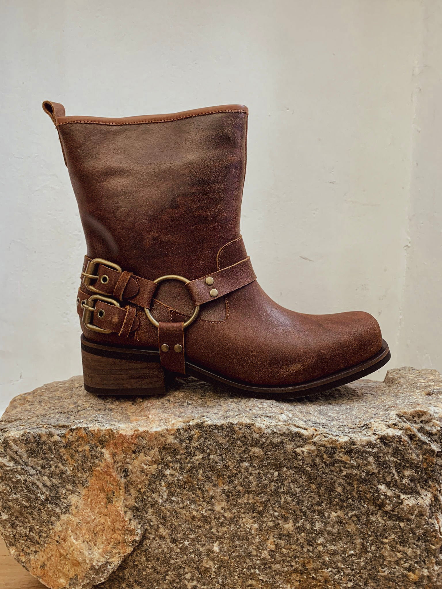 Las biker boots TERRAN llegaron para convertirse en tus infaltables de temporada. Confeccionadas en cuero 100% premium, combinan comodidad y estilo en un diseño versátil y moderno. Su suela de 3 cm y caña media de 23 cm logran el balance perfecto entre funcionalidad y estética. Además, cuentan con un estivo desmontable que te permite adaptar el look según la ocasión. Disponibles en negro carnaza craquelada y miel carnaza craquelada, son ideales para mujeres que buscan calidad y personalidad en cada paso.