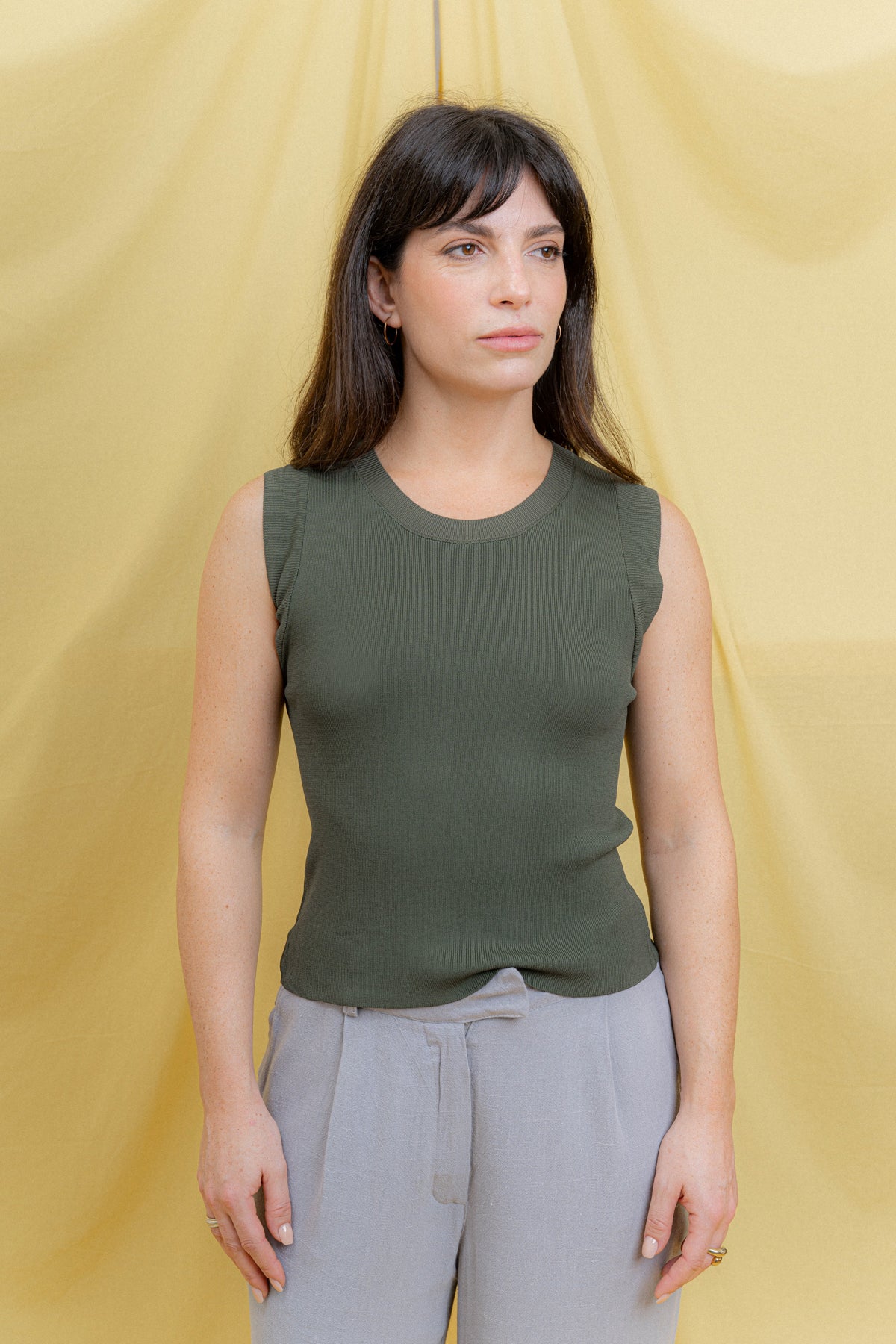 La musculosa Moa es sinónimo de versatilidad y elegancia relajada. Su calce al cuerpo y diseño minimalista realzan la silueta con un estilo atemporal que se adapta a cualquier ocasión. Confeccionada en un tejido suave y liviano, se convierte en un básico imprescindible para el día a día, fácil de combinar y perfecto para acompañarte en todas las temporadas.